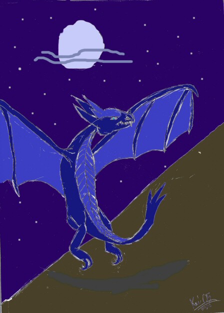 This is my first decent dragon!!! It was originally going to be set at dawn but it just sort of evolved into this: "Midnight Dragon"